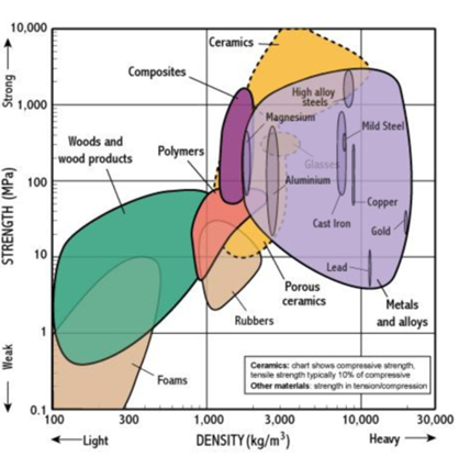 Figura 5: Comparação de peso e resistência de materiais