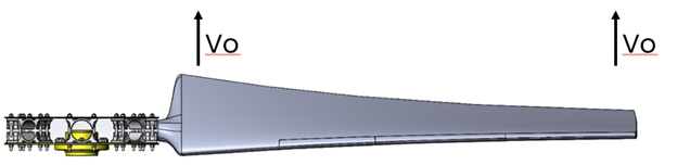 Figura 4: Exemplo de torsão aerodinâmica da pá para compensar a diferença de velocidades entre raiz e ponta