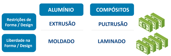 Figura 6: Quadro comparativo entre Alumínio e Compósitos