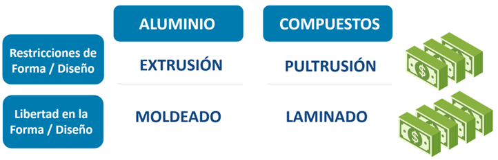 Figura 6: Cuadro comparativo entre aluminio y materiales compuestos