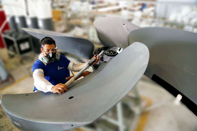 En el proceso de fabricación de nuestras aspas, se aplica el proceso de infusión al vacío (VIP) que permite producir aspas sin defectos, con repetibilidad de proceso, garantía de compactación y proporción ideal de resina y tejido.
