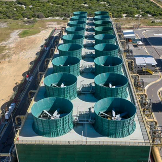 La Torre de Enfriamiento recoge agua de una planta industrial, que suele llegar a alta temperatura (alrededor de 40 °C) y enfría este líquido (agua tratada) reduciendo su temperatura (≈°C). Al enfriarlo, regresa al sistema y enfría los equipos y motores, haciendo que el sistema sea mucho más eficiente y el rendimiento aumente significativamente.