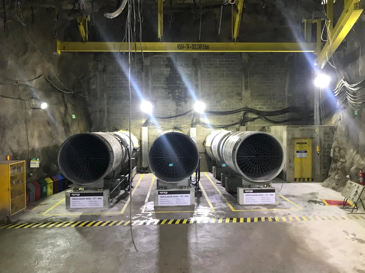 Geralmente posicionados em galerias já exploradas, esses ventiladores fornecem pressão estática positiva, auxiliando na manutenção do fluxo de ar adequado e garantindo estabilidade e eficiência na ventilação subterrânea.